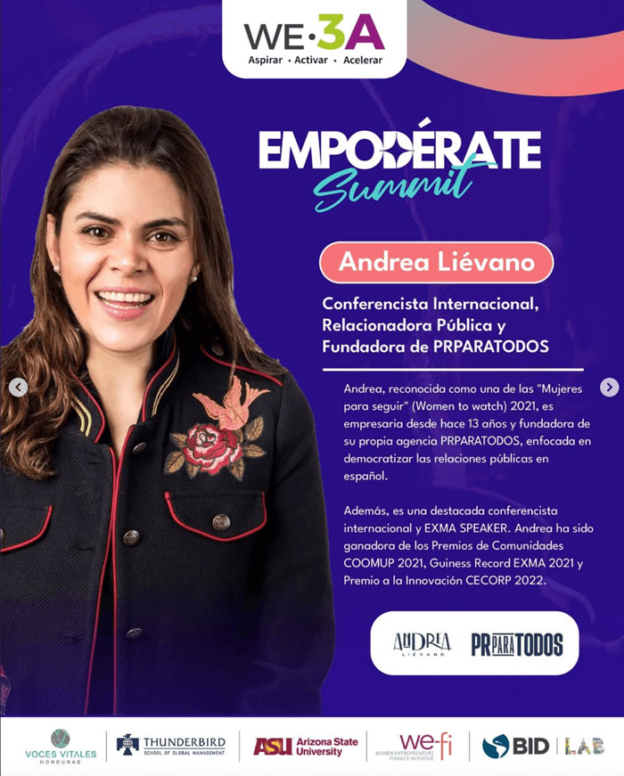 Andrea Liévano comparte su inspiradora transformación de diseñadora a líder de PR con 14 años de experiencia, destacando la valentía, innovación y perseverancia como claves para el éxito global.